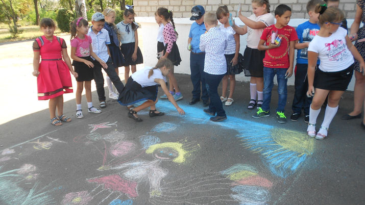 В первые дни сентября учащиеся 2-4 классов побывали на виртуальной экскурсии «С днём рождения, любимый город». Во время мероприятия дети познакомились с памятниками и достопримечательностями города Енакиево, итогом встречи стал рисунок на асфальте «Открытка любимому городу». Самые младшие школьники побывали на экскурсии в школьном уголке боевой славы, где им были представлены экспонаты-трофеи как времён ВОВ так и событий нашего времени. Отдельно внимание школьников было обращено к стенду «Герои ДНР», который посвящён погибшим односельчанам в 2014-2015 годах.